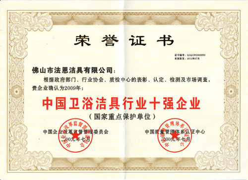 日前,由中国质量管理体系认证中心、中国企业改革监督管理委员会联袂举办的“中国卫浴洁具行业十强企业”评选活动,入选企业榜单揭晓。法恩莎榜上有名。