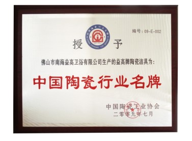 由中国陶瓷工业协会、甘肃省白银市人民政府主办,白银市平川区人民政府承办的首届中国西部(平川)陶瓷峰会暨平川陶瓷文化节,于2009年8月19日—20日在甘肃省白银市平川区会展中心隆重举行。期间,由中国陶瓷工业协会组织众专家评审的“中国陶瓷行业名牌”产品企业亦在大会中隆重举行了颁奖仪式,益高(EAGO)卫浴凭着科技领先、品牌领先、市场领先、管理领先的良好发展优势,在众多陶瓷卫浴企业中脱颖而出,获得中国陶瓷工业协会主办方及专家评委们的一致好评及推荐,并被授予了“中国陶瓷行业名牌”荣誉,无疑,喜获国陶瓷行业名牌”再次增加了益高卫浴乃为中国卫浴领域崛起的强势品牌、中国知名品牌的份量,证实了益高卫浴有策略、有步骤地步入了最具规模、最高水准的国际高端卫浴品牌!