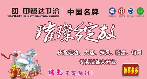 申鹭达卫浴创办于1978年,先后荣获“中国名牌”、“中国驰名商标”、“中国环境标志认证”、“中国水龙头十大知名品牌”等殊荣。凭借良好的质量和信誉,申鹭达卫浴先后和美国史密斯热水器、万家乐等建立良好的长期合作关系。此次西安各地区申鹭达专卖店为庆祝广大消费者在近三个月对申鹭达产品的大力支持,特联合举办了这次大型活动来回馈新老顾客!